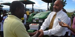 On Tuesday, December 20, 2011, during a ceremony held at the Rural Center for Sustainable Development (CRDD) of Bas Boen, the U.S. government, through the United States Agency for International Development (USAID), provided nine tractors to Haitian farmers’ associations of the region around Saint Marc.